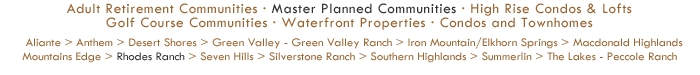 Condos & Townhomes Waterfront Properties High Rise Condos & Lofts Master Planned Communities Adult Retirement Communities Adult Retirement Communities Condos & Townhomes Waterfront Properties High Rise Condos & Lofts Master Planned Communities Rhodes Ranch