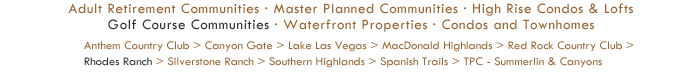 Condos & Townhomes Waterfront Properties High Rise Condos & Lofts Master Planned Communities Adult Retirement Communities Adult Retirement Communities Condos & Townhomes Waterfront Properties High Rise Condos & Lofts Master Planned Communities Rhodes Ranch